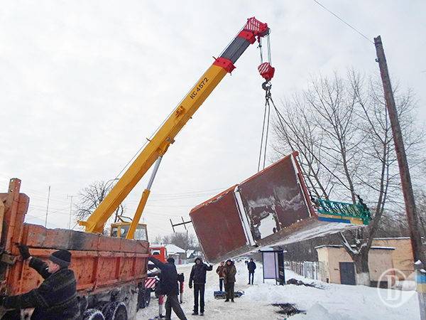 Стару зупинку було обережно зрізано автогеном та покладено до вантажного автомобіля.