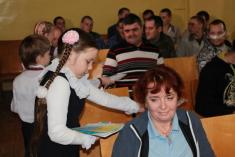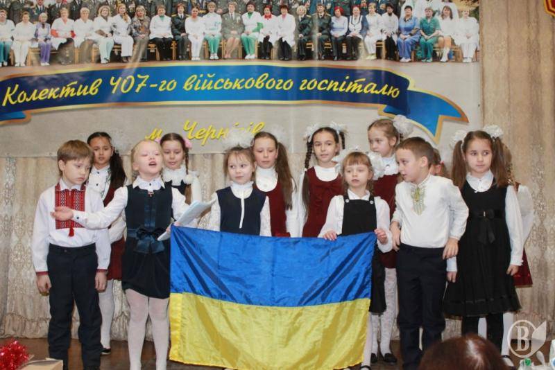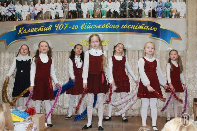 Гості привітали військовослужбовців-учасників АТО, які проходять в госпіталі лікування, з Новорічними святами, побажали найскорішого одужання та передали смаколики: печиво, цукерки, фрукти і соки. А дітки подарували воїнам свої малюнки, листи, новорічні сувеніри, а також святковий настрій, влаштувавши невеличкий концерт. Малюки декламували вірші, співали пісень, розповідали гуморески. Разом з ними виступили і їхні батьки.