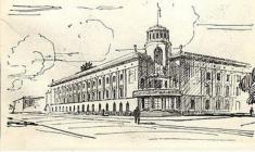 На архівному фотознімку та ескізі – губернська земська управа.