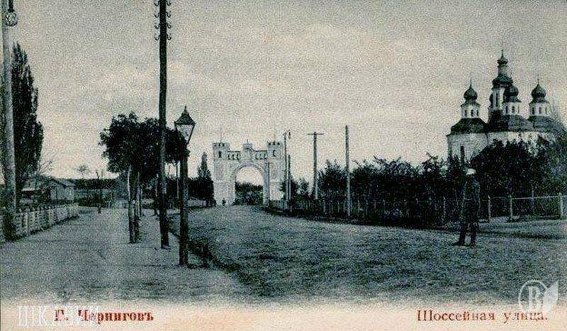 Ну і найвідоміша – на Шосейній, біля Валу. Коли вона там з'явилася точно сказати складно, проте споруда була й близько не такою капітальною, як може здатися: «Дерев'яна брудно-біла полуплена тріумфальна арка» – так її описував Г. О. Лазаревський.