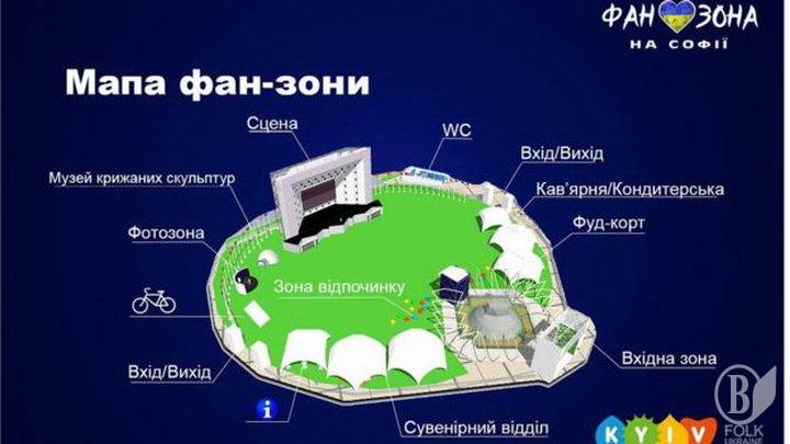 Великий екран обіцяють на Софійській площі, де 30 квітня відкриють фан-зону з вертикальним газоном з живих квітів. Усю територію застелять спеціальним покриттям, а навколо висадять 10 тис. тюльпанів.