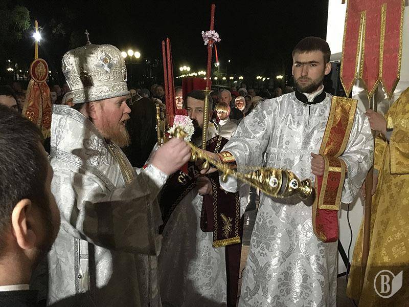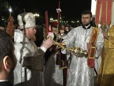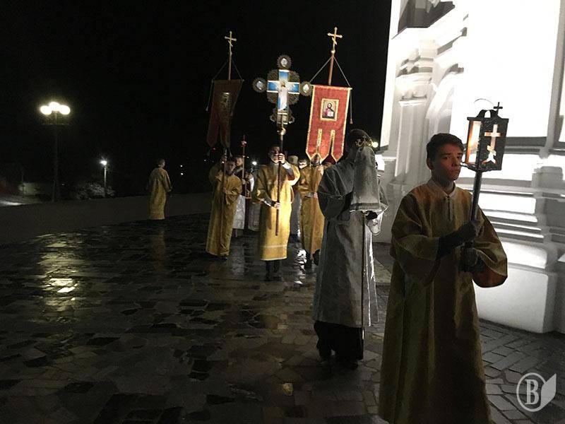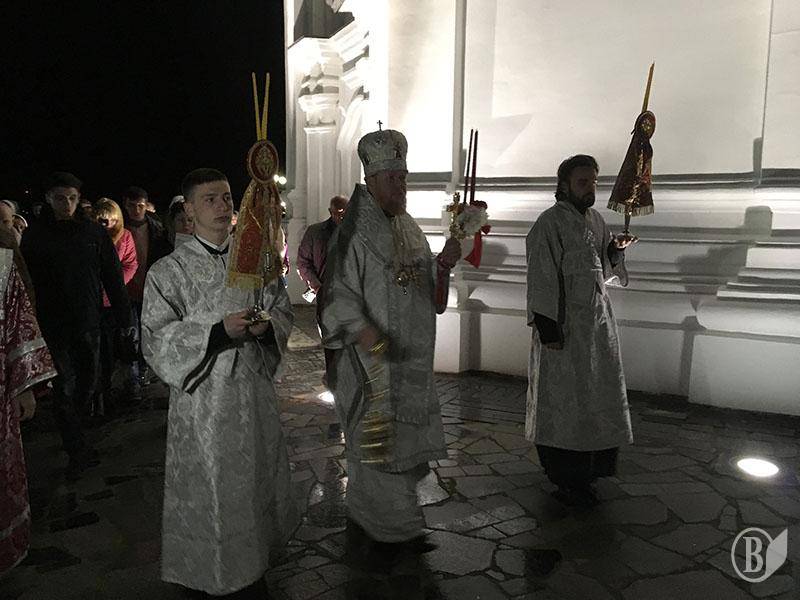 Перед північчю розпочався хресний хід навколо собору. Перед закритими церковними дверима, які символізують Гроб Господній, співом «Христос Воскрес!» розпочалася Великодня утреня. Богослужіння продовжилося у храмі співом канону.