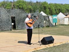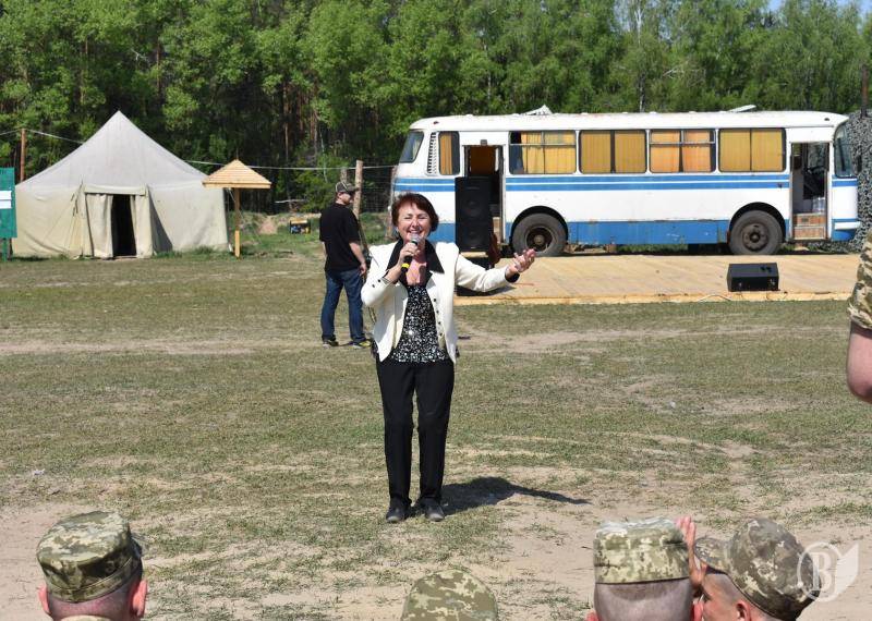 Свій виступ, присвячений Дню пам’яті та примирення та 72-ї річниці перемоги над нацизмом у Другій світовій війні, артисти провели в польовому таборі, де підрозділ готується до тактичних навчань.
