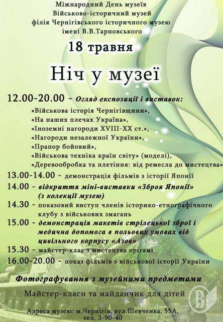 Раніше на «Ніч в музеї» запрошував Чернігівський історичний музей ім. Тарновського, але на суботу, 20 травня.
