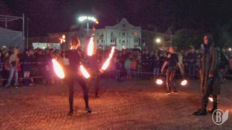 Під час фестивалю «Машина часу», звісно що вже ввечері, на Красній площі в Чернігові відбулось шоу вогню.