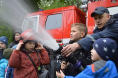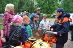 Діти могли за допомогою пожежного ствола влучити струменем води у ціль, вогнегасником загасити справжнє полум’я, приміряти каски, бронежилети, захисні костюми, бойовий одяг, попрацювати з міношукачем, посидіти за кермом оперативно-рятувальної техніки.