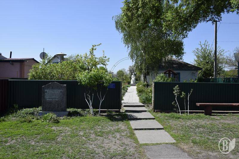 У садку ростуть дерева-сучасники художниці, біля хвіртки – понад сторічний берест (в’яз), навколо хати – плетений тин і безліч квітів. Тут же стоїть мармурова скульптура Катерини Білокур у повний зріст авторства її племінника Івана Білокура, якого вона вчила малювати.
