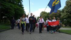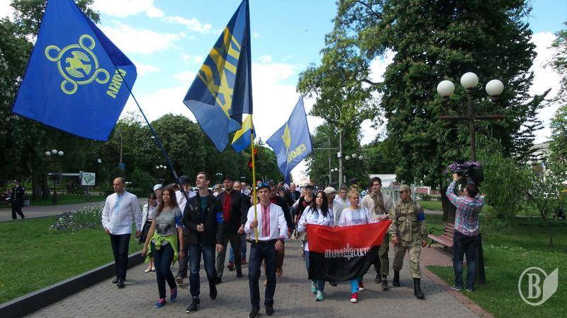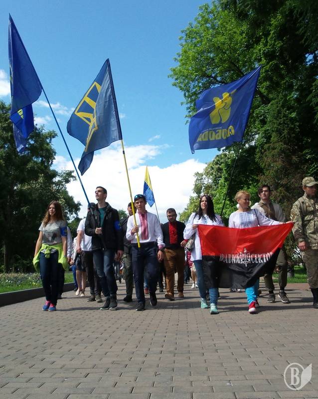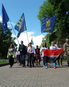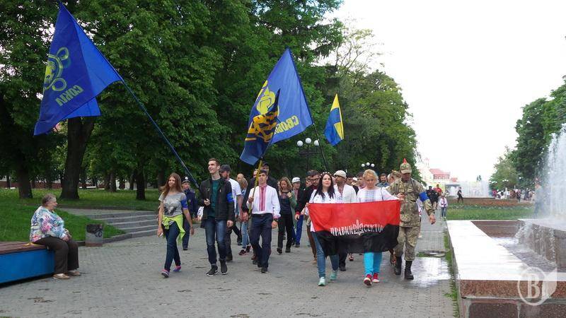 Представники організацій Північний корпус, ВО "Свобода" і "Правий Сектор" зібралися в центрі міста біля торгівельно-розважального центру "Мегацентр" і колоною пройшлися до пам'ятника борцям за волю України, вшанувавши загиблих героїв на центральній площі.