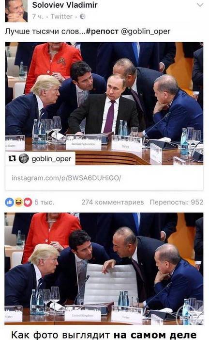 Поки російські телеканали вустами «експертів» по жестах розповідають, як домінував там над усіма Путін, деякі українські телеканали роблять те ж саме, тільки в профіль. У профіль Трампа.