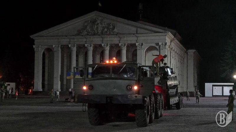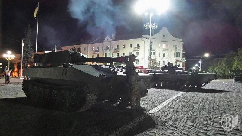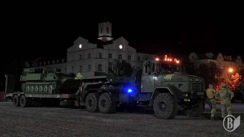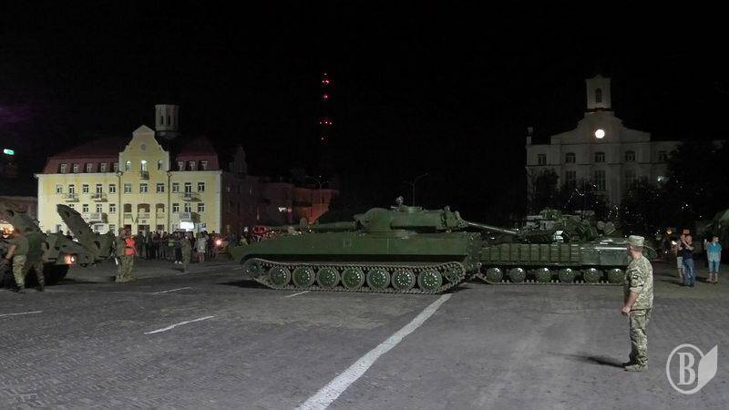 Військова техніка, що сьогодні виставлена на Красній площі, прибуле вчора у відносній прохолоді пізнього вечора.