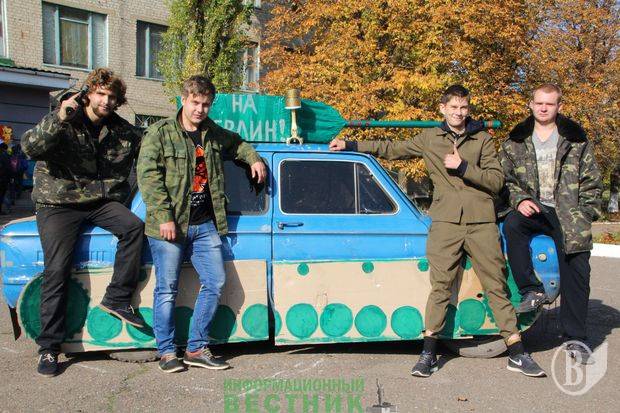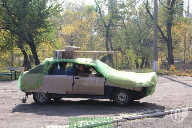 У навчальному закладі, котрий спеціальності має начебто цивільні, продемонстровано явні прояви мілітаристського угару. Це таке обліплення старезних авто причандалами на зразок башти з гарматою тощо.