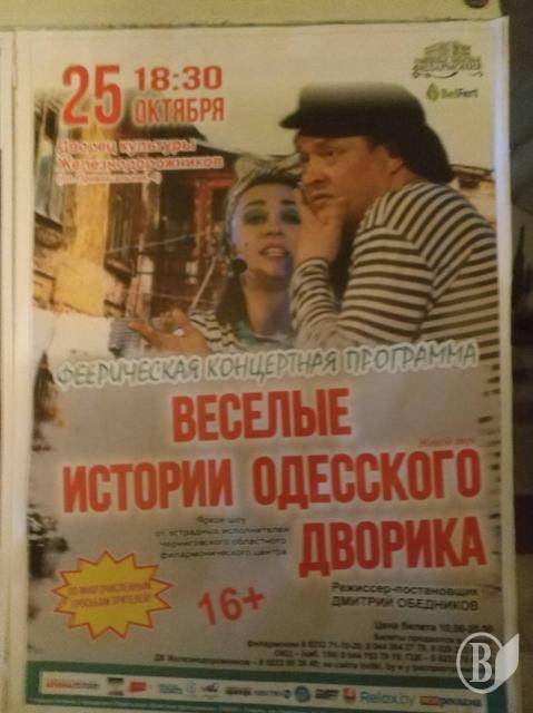 А вистава Чернігівського філармонійного центру «Ліричні та веселі історії Одеського дворика», повернувшись з дружнього Гомеля, знову оселилася на рідній сцені, де 27 жовтня традиційно зібрала повний аншлаг.