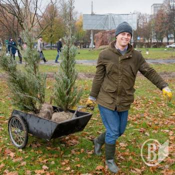 Головна подія – висадка молодих дерев. Волонтери під наглядом працівниць КП «Зеленбуд» висадили тисячорічні дерева гінкго, декоративнолистні сорти верби, алею білих акацій форми глобоза, березу Юнги, райські яблуні, лохолисті груші, 3 сорти фундука, більше 20 видів кущів, колекцію ялівців та спражню новорічню красуню ялину.