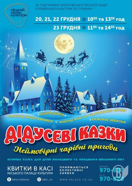 Крім того, на вас чекатиме новорічна шоу-програма «Дідусеві казки».