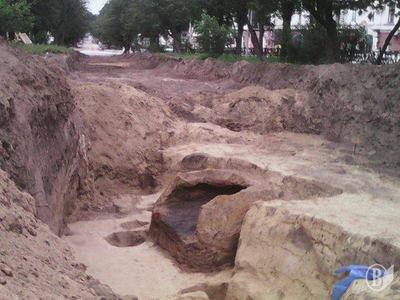 «Під час реконструкції місцеві археологи знайшли глинобитну піч часів Київської Русі. Після того, як піч дослідили, вона була знову закопана», – коментує він фото.