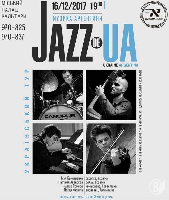 У Чернігові 16 грудня о 19 годині в Міському палаці культури виступатимуть вперше в Україні аргентинські музиканти з прем’єрою програми «JazzUA».
