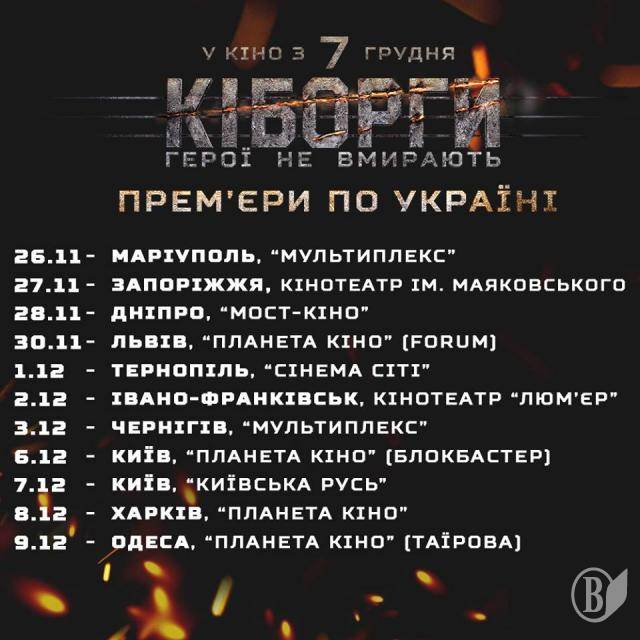 «Кіборги»: розклад прем’єр по Україні