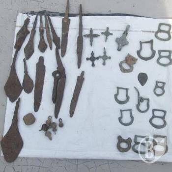 Серед них: 14 наконечників до стріл та списів, 12 пряжок, 5 хрестиків, 6 ґудзиків та один щиток персня.