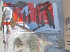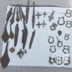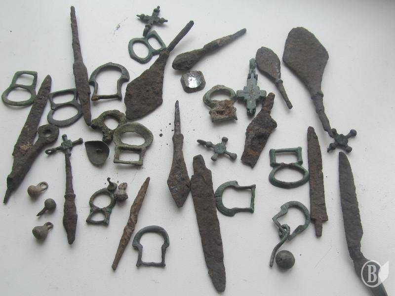 Серед них: 14 наконечників до стріл та списів, 12 пряжок, 5 хрестиків, 6 ґудзиків та один щиток персня.