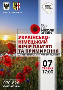 Українсько-німецький вечір пам'яті та примирення заплановано на 7 травня, в переддень 9 травня, у Чернігові в Міському палаці культури.