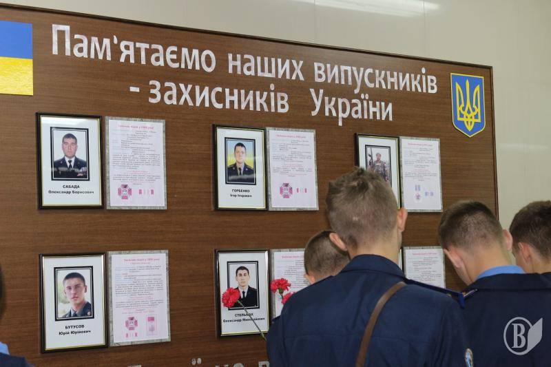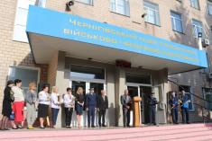 На урочистому шикуванні перед навчальним корпусом разом з офіцерами, викладачами, вихованцями ліцею були присутні матері героїв Чернігівщини, загиблих під час воєнних дій на сході нашої держави, представники влади, громадських організацій. До меморіальної дошки на честь випускників ліцею, які загинули в ході АТО вихованцями - синами учасників війни на Сході були покладені квіти.