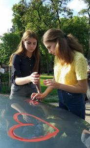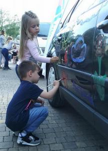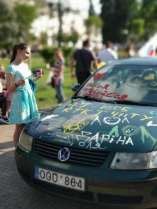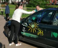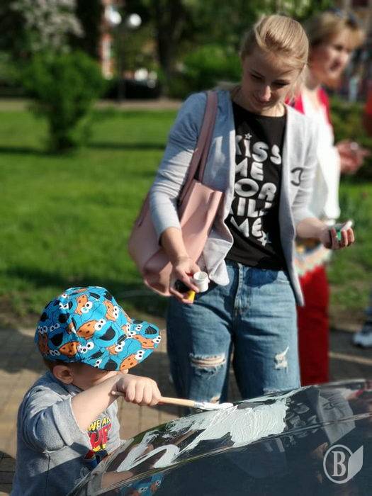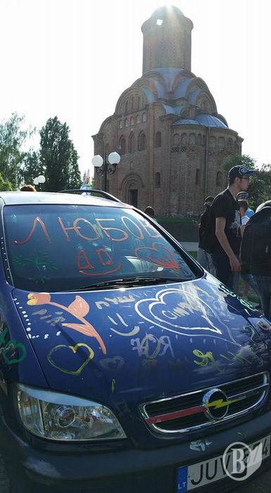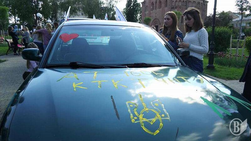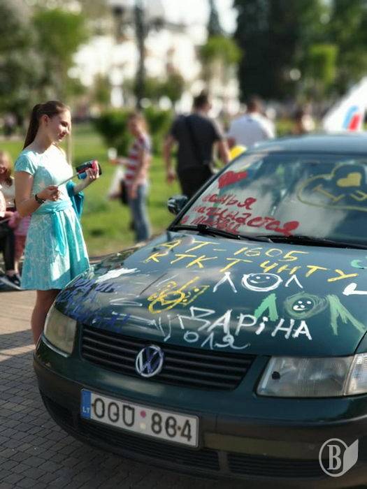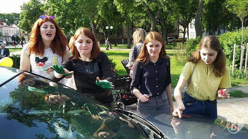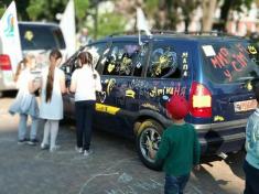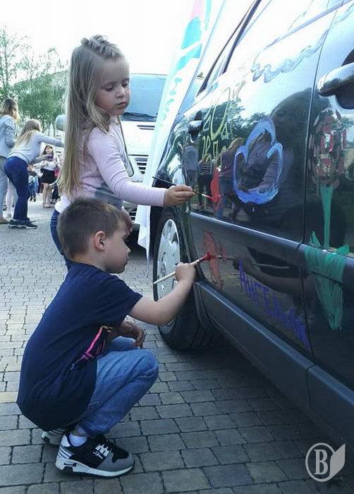 Щоправда, організатори анонсували «розмальовування ретро-автомобілів», а розмальовували насправді… авто з єврономерами. Що ж, якби не ті номери, довелося б малювати на «Запорожцях».