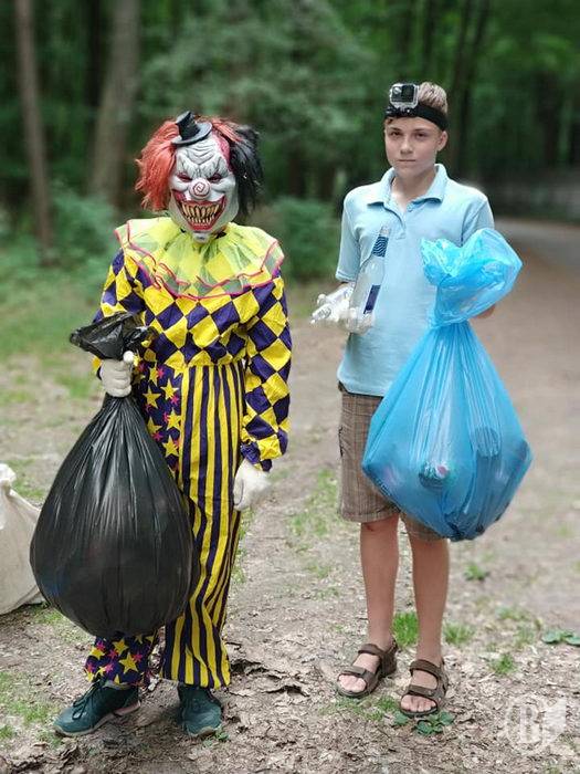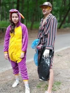 Активісти чернігівської спільноти «Еко місто» провели акцію прибирання у Ялівщині 16 червня у костюмах різних мульт- і казкових героїв.