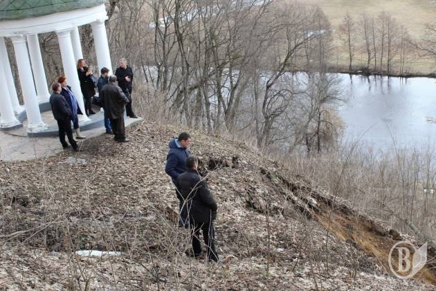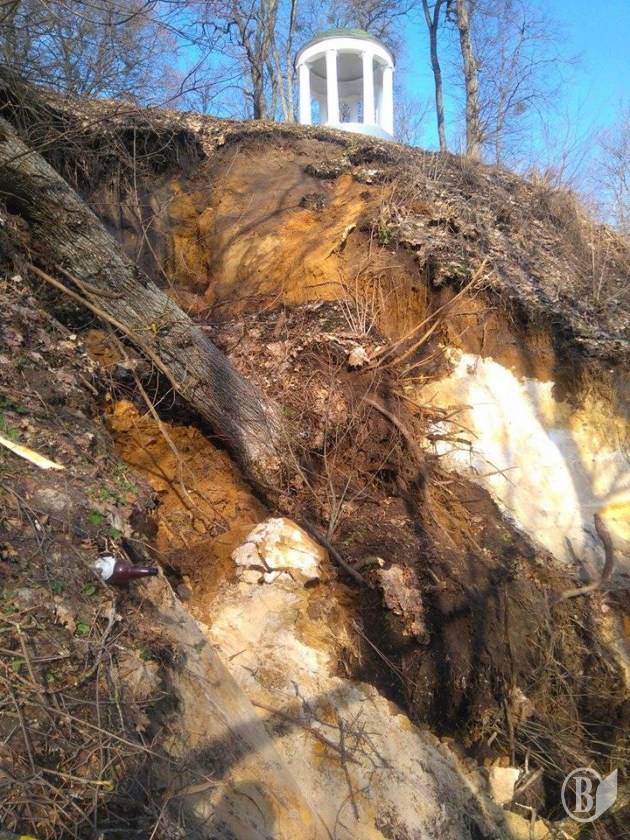 Альтанка, про яку мова, будувалася на зрізаній і штучно підсипаній терасі. А ґрунти там досить м’які, сипучі, рухливі. Враховуючи це, лизогубівські "ландшафтні дизайнери" розплановували територію так, що дощові води не стікали вниз із гори, не розмивали її, а йшли в іншому напрямку в найближчі природні яри.