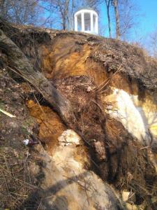 Закінчилось це зовсім плачевно навесні нинішнього року. На початку квітня, в результаті швидкого танення снігу, гора, на якій стоїть альтанка, посунула вниз. Під пам’яткою з’явилися загрозливі тріщини у ґрунті, готовому при першій же нагоді обвалитися разом із нею. Ситуація - катастрофічна!