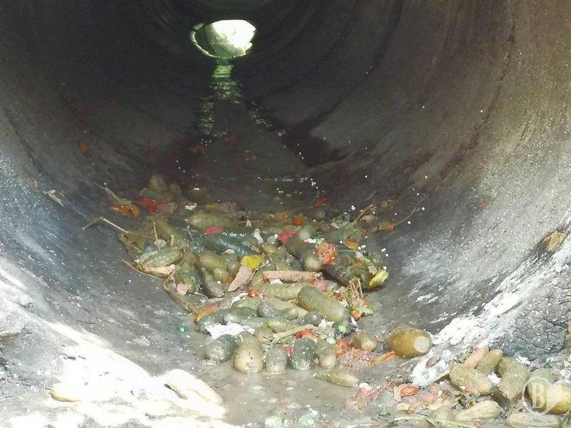 Як повідомляє КП АТП-2528 з його потужною прес-службою, в трубі зливової каналізації, яка так болюче потрібна жителям Рівчака, на перехрехті з вулицею Мартина Небаби, опинилися… солоні огірки. Багато солоних гурків!
