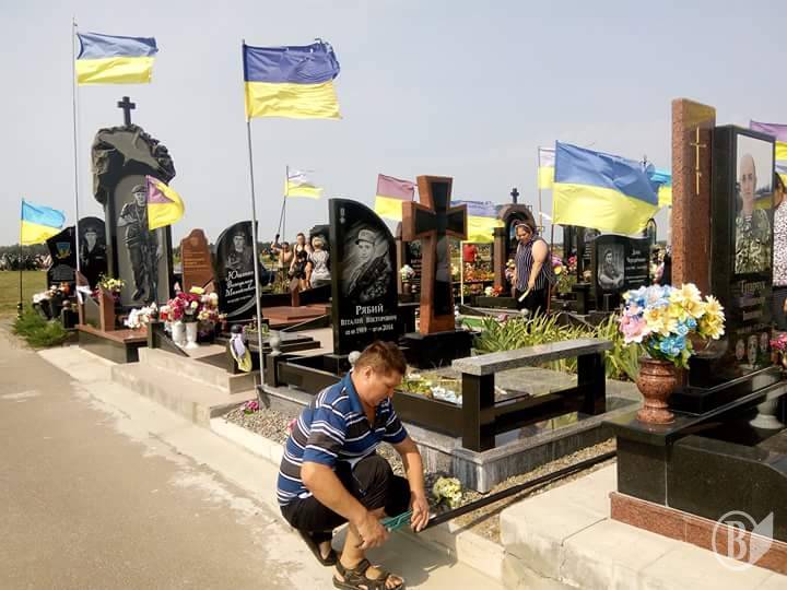 На чернігівському кладовищі Яцево 21 серпня активисти ГФ «Самооборона Чернігіщини», «Перша Чернігівська сотня» та інши небайдужі громадяни допомогли рідним загиблих за нашу Незалежність встановити на могилах воїнів стаціонарні флагштоки.