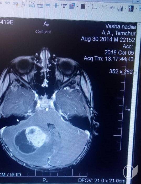 – П'ятого жовтня чотирирічному Артему, нашому синові, зробили МРТ головного мозку. Дослідження виявило наявність значної пухлини. Дитину береться оперувати клініка в Туреччині. Втім, операція потрібна негайно: рахунок йде на дні! Вартість операції та післяопераційної реабілітації складає від 10 до 15 тисяч доларів. Тож благаємо людей допомогти нашій дитині!