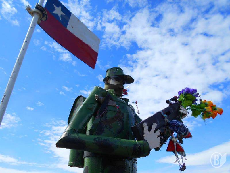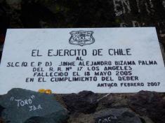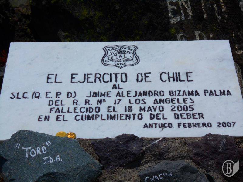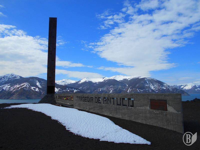 Вскоре дошёл до монумента жертвам Антукской трагедии. 18 мая 2005 года здесь случилась самая большая трагедия в истории Вооружённых Сил Чили в мирное время. Сошедшая со склона вулкана Антуко лавина накрыла 45 военных (44 солдата, которым было по 18-19 лет, и 1 сержант). Вдоль дороги на протяжении нескольких километров расположены символические могилы жертв трагедии.