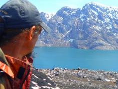 Вошёл на территорию Национального парка "Лагуна Лаха", и вскоре моим глазам предстало красивейшее озеро Лаха, находящееся на высоте более 2000 метров над уровнем моря. Питается водой озеро за счёт стекающих в него талых вод ледников окрестных гор. Но задерживаться на озере не стал, а двинулся дальше Антукским горным проходом, по которому шли и герои Жюля Верна.