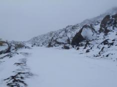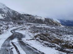 На смену дождю в ночь с 9 на 10 октября выпал снег. Я даже возрадовался этому, так как снег всегда лучше дождя. Пришлось утепляться, обматывать ноги в носках целлофановыми пакетами, доставать из рюкзака купленную в Боливии тёплую шапку и топать по свежему снежку вдоль озера Лаха. Дальше начался спуск, зона снега вскоре закончилась, а затем остановился пикап с двумя работницами Национального парка, которые и довезли меня до Антуко. В тот же день вечером я был уже "в цивилизации".