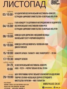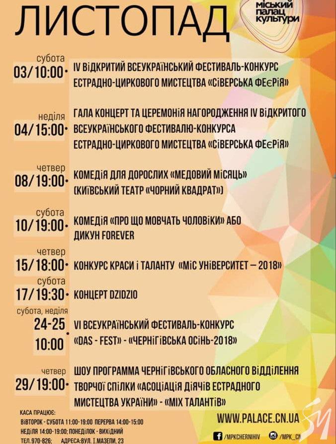 Комунальне підприємство «Чернігівський міський палац культури» повідомляє про заплановані заходи на листопад 2018-го.