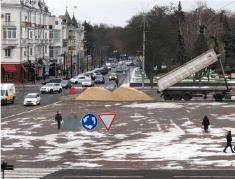 Сьогодні, 20 листопада, на Красній площі почали роботи з облаштування зимової ковзанки. Зокрема встановлено контури ковзанки з бетонних опор і вантажівками привезли пісок.