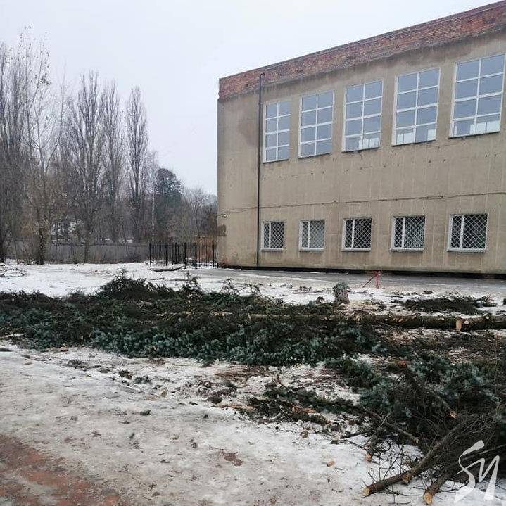Знищено ялини біля Міського палацу культури Чернігова