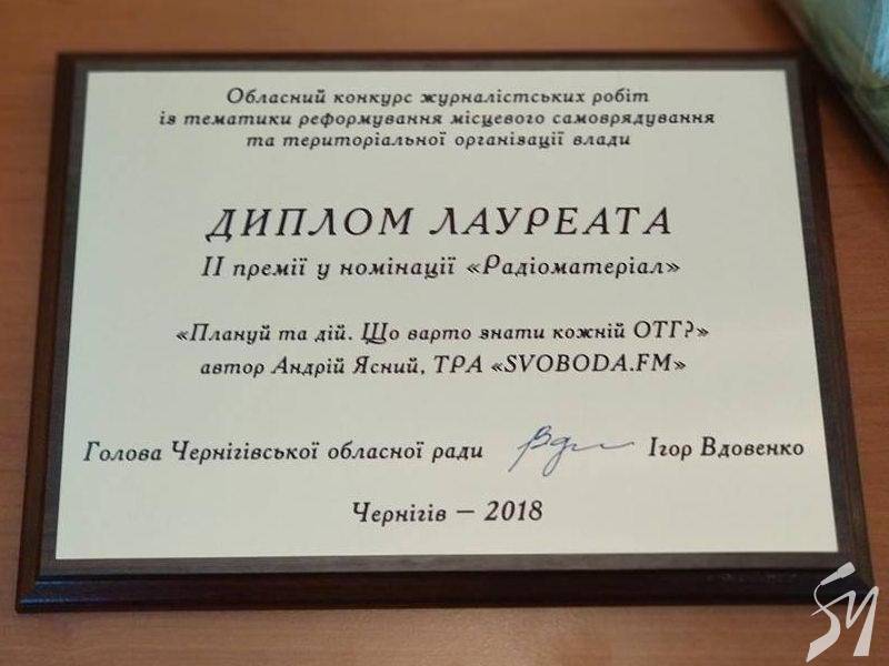 Вітаємо нашого радіожурналіста Андрія Ясного – одного з переможців конкурсу журналістських робіт з місцевого самоврядування.