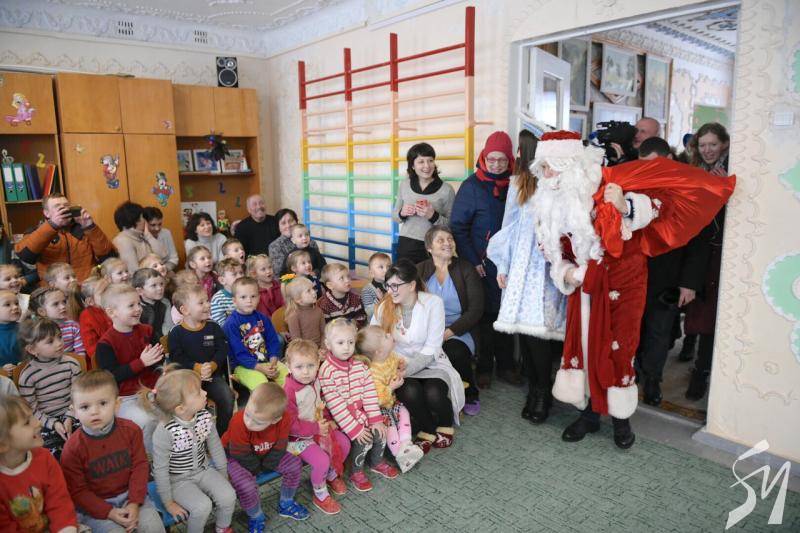 «Ми так довго йшли до вас. Дороги заметені. Холод лютий. Вовки за нами гнались, хотіли відібрати ваші подарунки. Але ми їм не дали, бо подарунки – для найкращих в світі діточок!», – сказав політик малюкам.