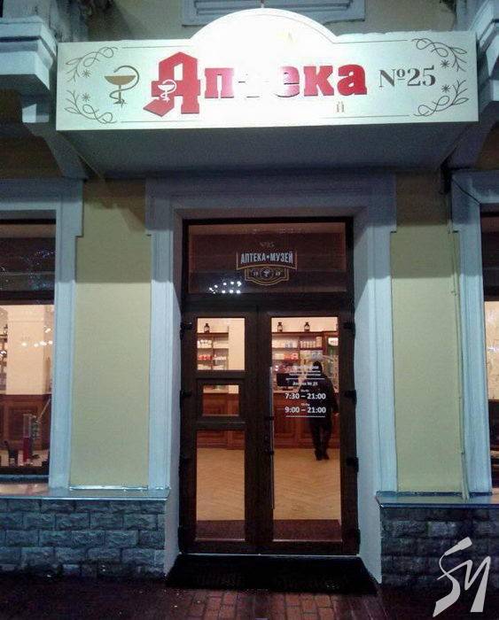 В центрі Чернігова, на Красній площі, діє аптека з експонатами з радянських часів, деякі з речей досить давні.