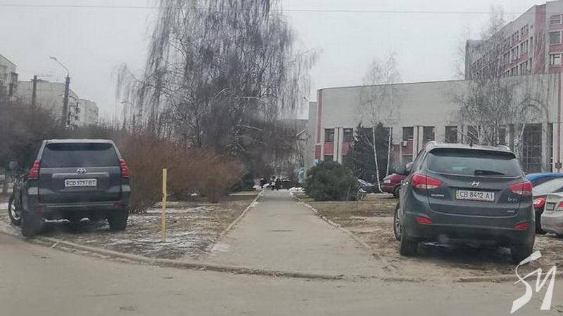 Біля другої міської лікарні Чернігова (разом з поліклінічним відділенням) є парковка, однак чи то її не всім вистачає, чи то з протилежного боку вулиці важко пройти, чи з якихось інших мотивів деякі панове (може, показати, які вони пани?) паркуються на газонах.