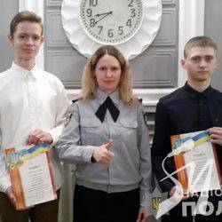 Сьогодні під час святкування «Дня науки» у Міському будинку культури старший інспектор ювенальної превенції Прилуцького відділу поліції Тетяна Пироженко вручила Артемові та Максиму подяки.