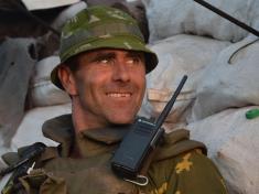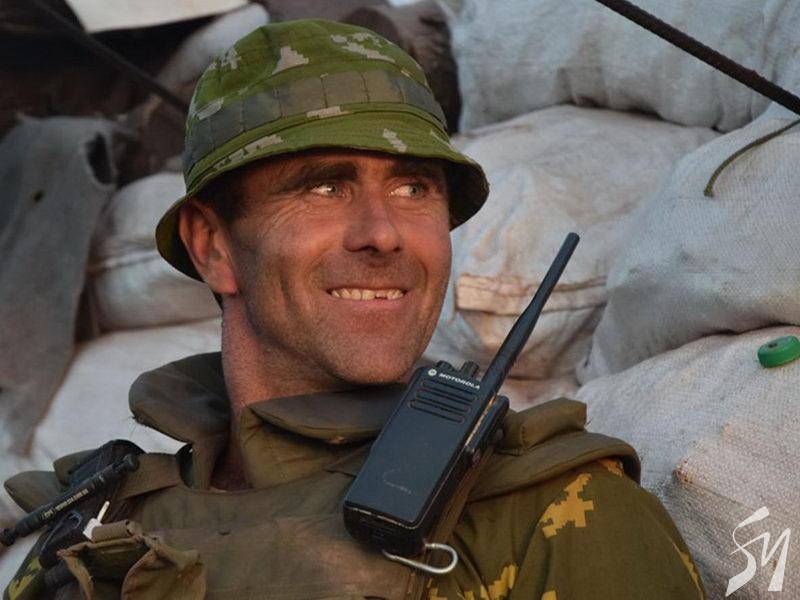 Кремезний чоловік родом із Чернігівщини, міцні руки і таке ж рукостискання кажуть про неабияку природну силу. Тому сталевий прут зі стягом наш захисник увігнав у сланцеву донбаську землю так, що ворог не витягне.