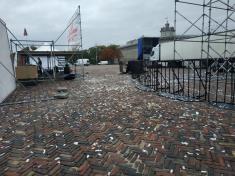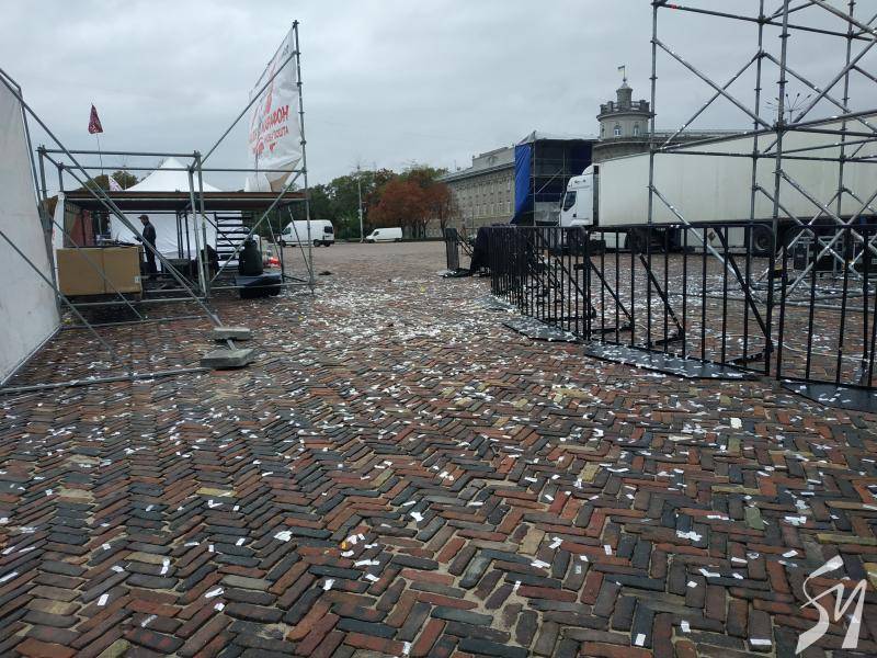 З неї почали стріляти конфетті уже після того, як «Машина времени» пішла зі сцени 21 вересня о 22 годині. Конфетті прилипли під дощем, який поливав площу. Їх неможливо було змести і зібрати дорожнім пилососом «Глобус» наступного ранку, 22 вересня.