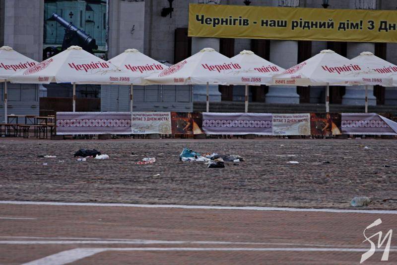 Чернігів відсвяткував День міста. Всі три ранки працівники АТП-2528 удосвіта прибирали площу. Найбільшої шкоди благоустрою на площі завдала 13-та гармата.