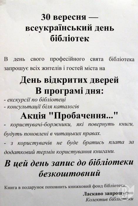Сегодня – Всеукраинский День библиотек