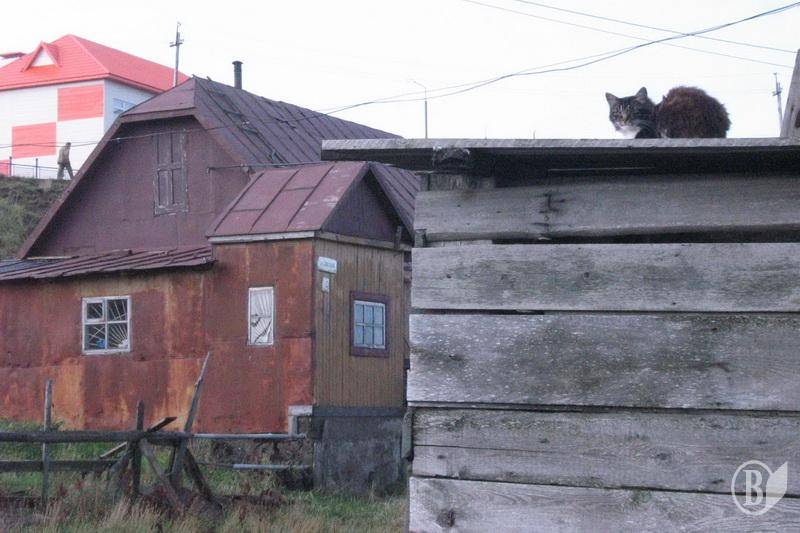 Гуляючи по Нікольському, намагався підмітити якісь місцеві особливості. Одна з них – велика кількість домашніх котів, які вийшли на вулицю погрітися під сонцем: вони повилягались на підвіконнях, дахах сараїв, капотах машин. Поруч ходять такі ж хазяйські собаки і не звертають на котів жодної уваги. На городах командорці копають картоплю. На березі океану, поруч з ангаром Сергія Пасенюка стоїть старий, але досить міцний сарай, на одну з його стін прикріплено дерев’яний щит із написом: „Этот склад построен американской компанией „Гутчинсон Кооль” в 1870-х годах”.
