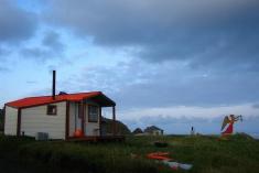 Будиночок для мандрівника був просто чудовим: велика кімната з двома широкими ліжками-нарами, стіл, кілька стільців, саморобна металева грубка, телевізор, барометр-самописець, бінокль, диковинні мушелі, магнітофон з касетами Висоцького, Візбора, Городницького, на стінах висіли картини і фотографії Сергія, на книжковій полиці стояли книги Хемінгуея, Стівенсона, Марка Твена, Гріна, а також справжні раритети – „The international code of signals” (Лондон, 1926 року видання) і „Port of New York. Marine, transportation, industries” (Нью-Йорк, 1929 р.). Двоскатна стеля була обклеєна великими морськими картами. Широкий ганок під навісом виходив на берег океану, і вже у якихось 10 метрах від дверей шумів прибій.