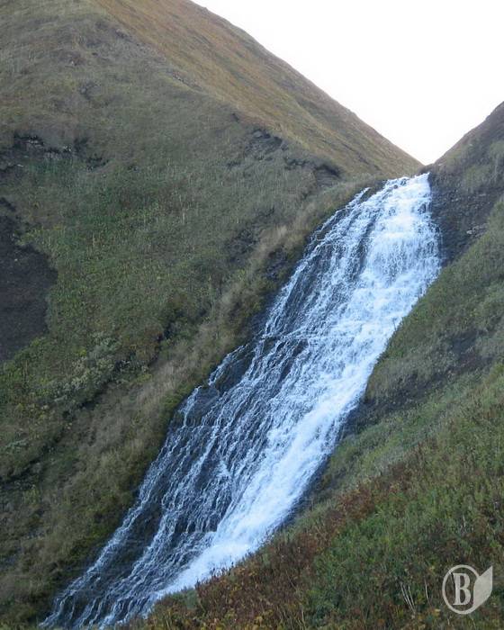 С крутых склонов прибрежных сопок спадают чрезвычайно красивые и живописные водопады, смотреть на которые можно часами. Я попал в странный для меня мир и потому пытаюсь как можно больше увидеть, почувствовать и внести в память своего мозга.